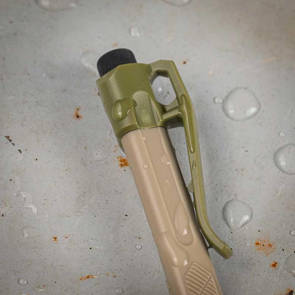 Tough-plastic pocket clip, lanyard loop to tie pencil down or hook to gear, triangular textured grip, click lead advancement